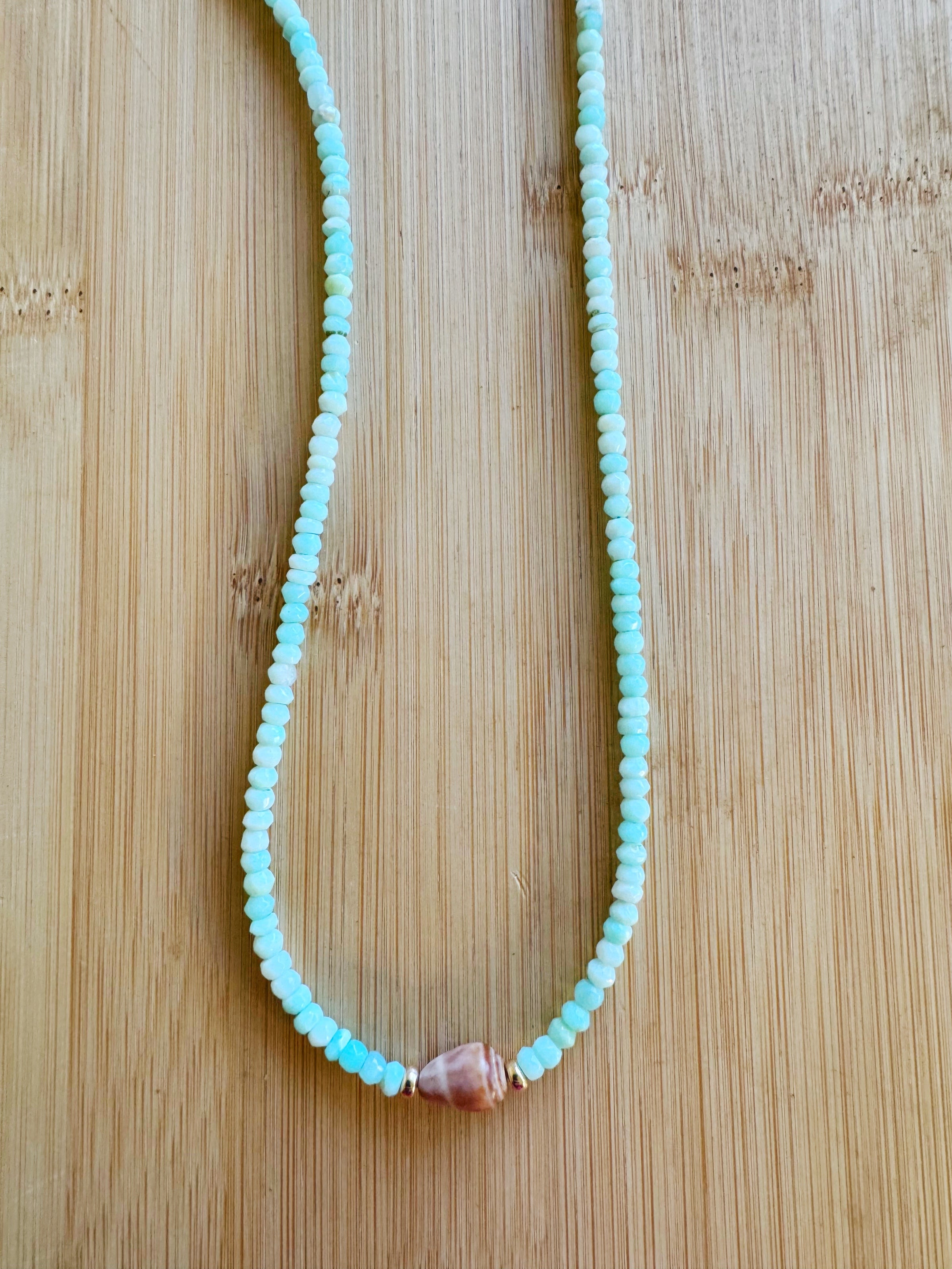 Ready To Ship Peruvian Opal and Sea Shell Necklace