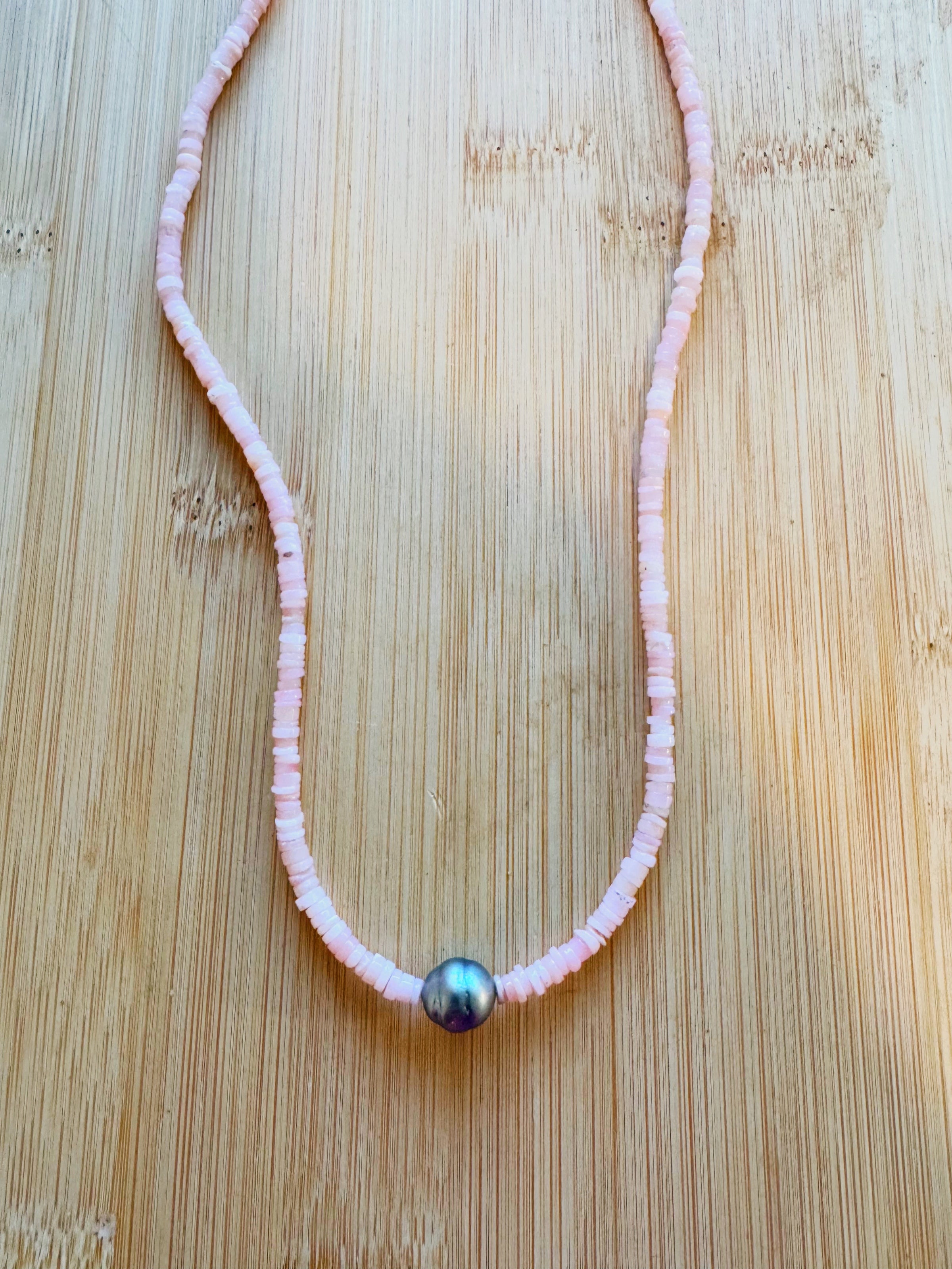 Ready To Ship Pink Opal and Black Tahitian Pearl Necklace