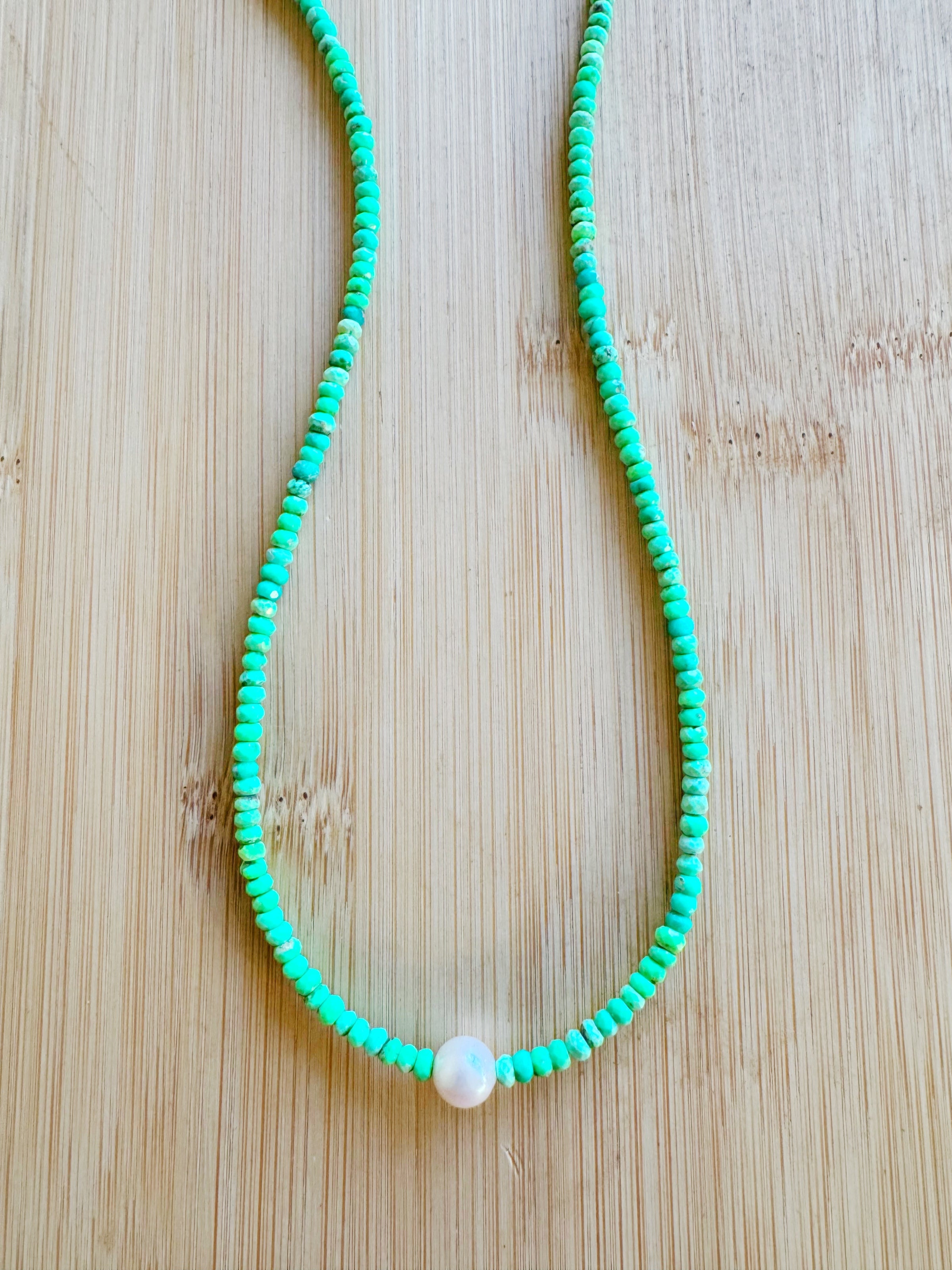 Ready To Ship Green Turquoise and Fresh Water Pearl Necklace