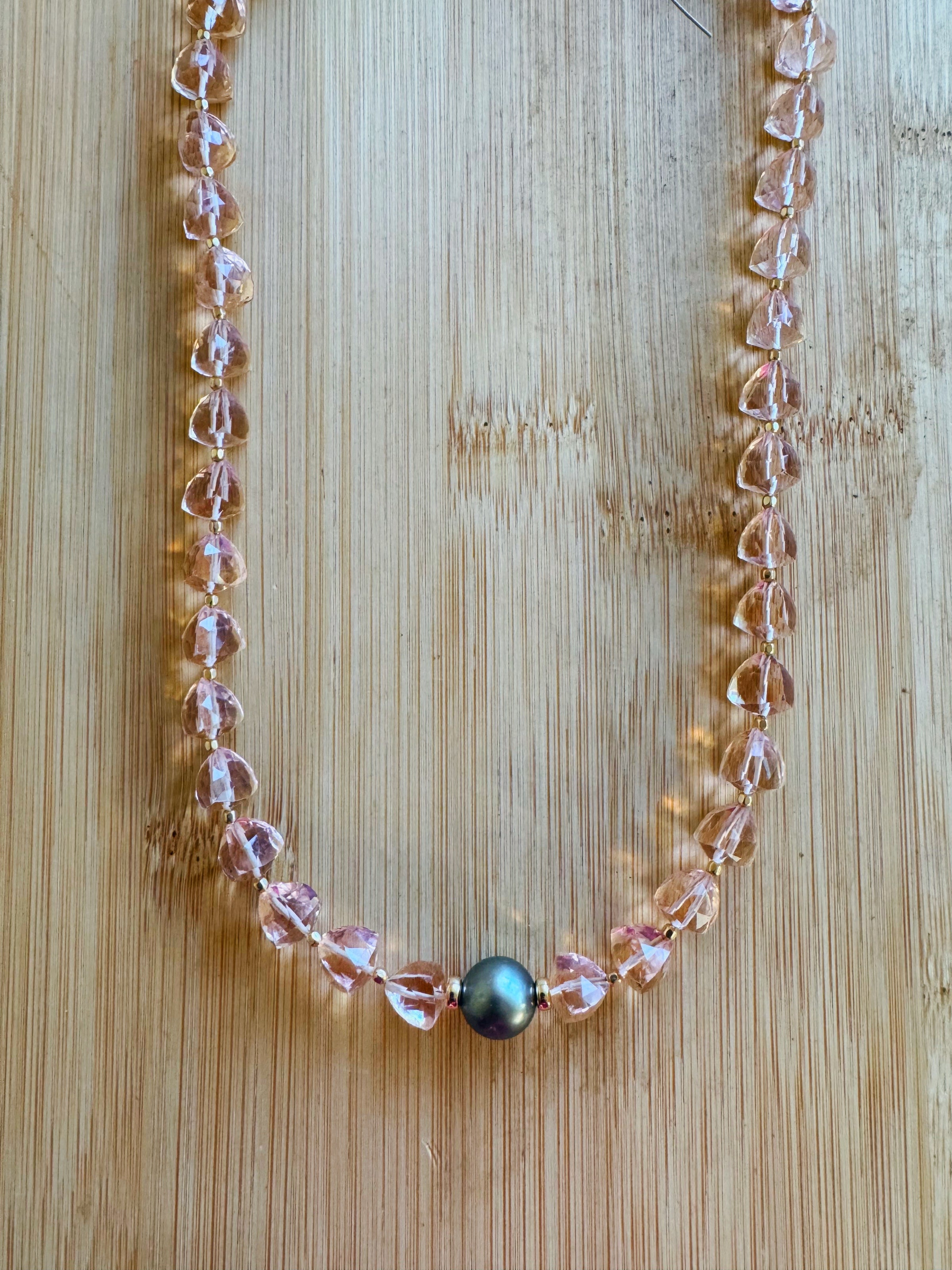 Ready To Ship Peach Quartz and Black Tahitian Pearl Necklace