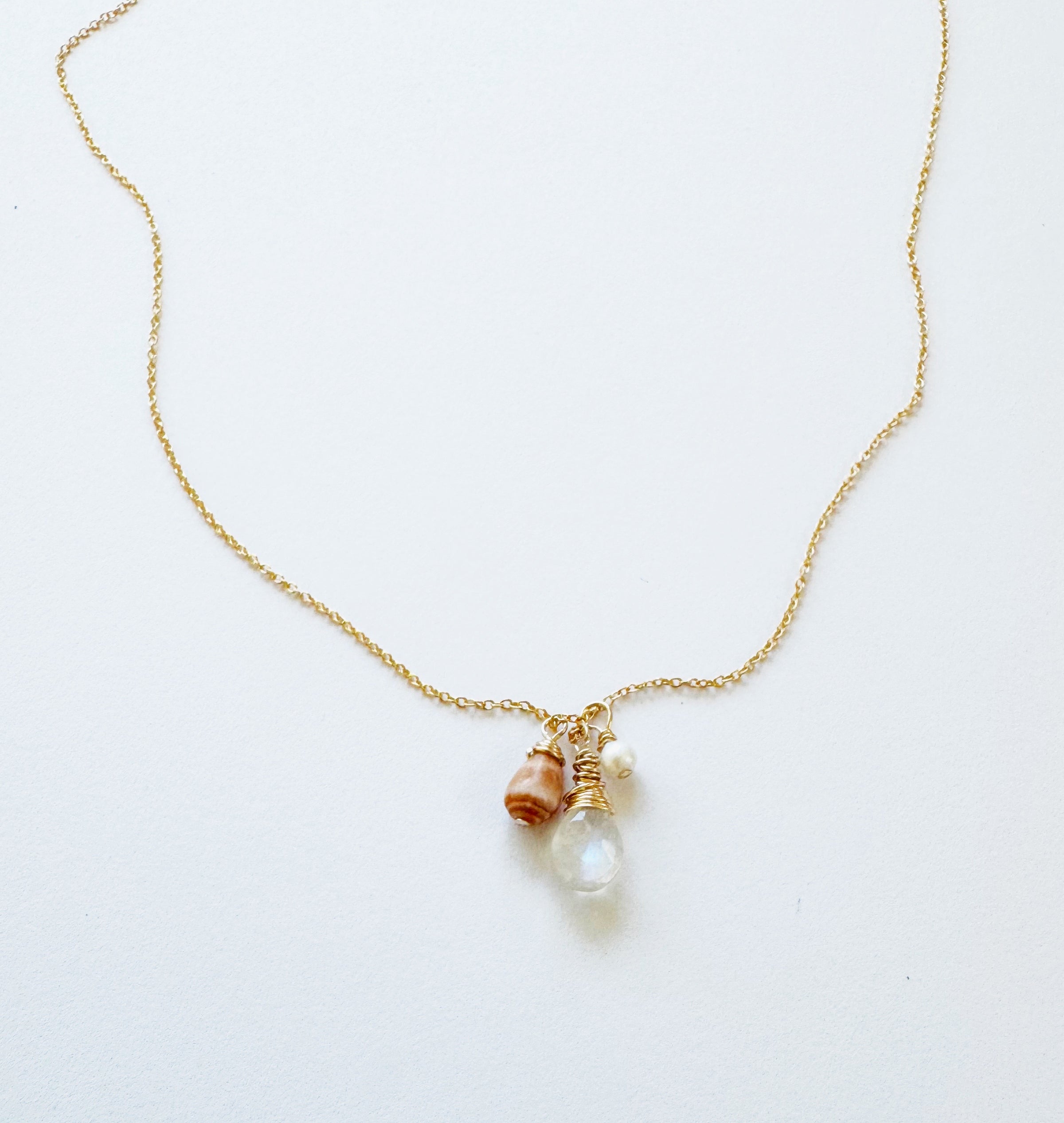 Dainty Rainbow Moonstone, Shell, Fresh Water Pearl Necklace
