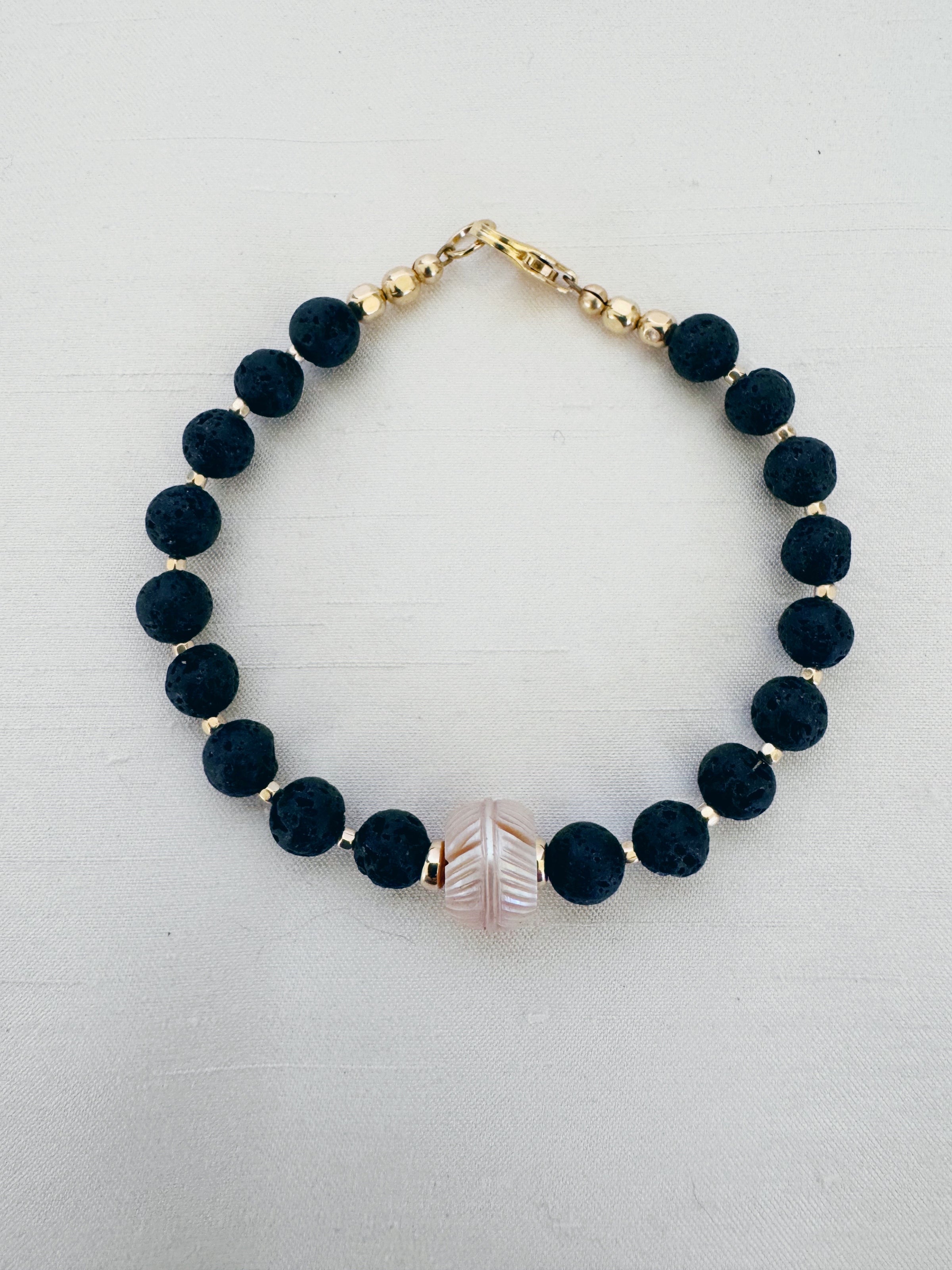 Lava and Carved Edison Pearl Bracelet