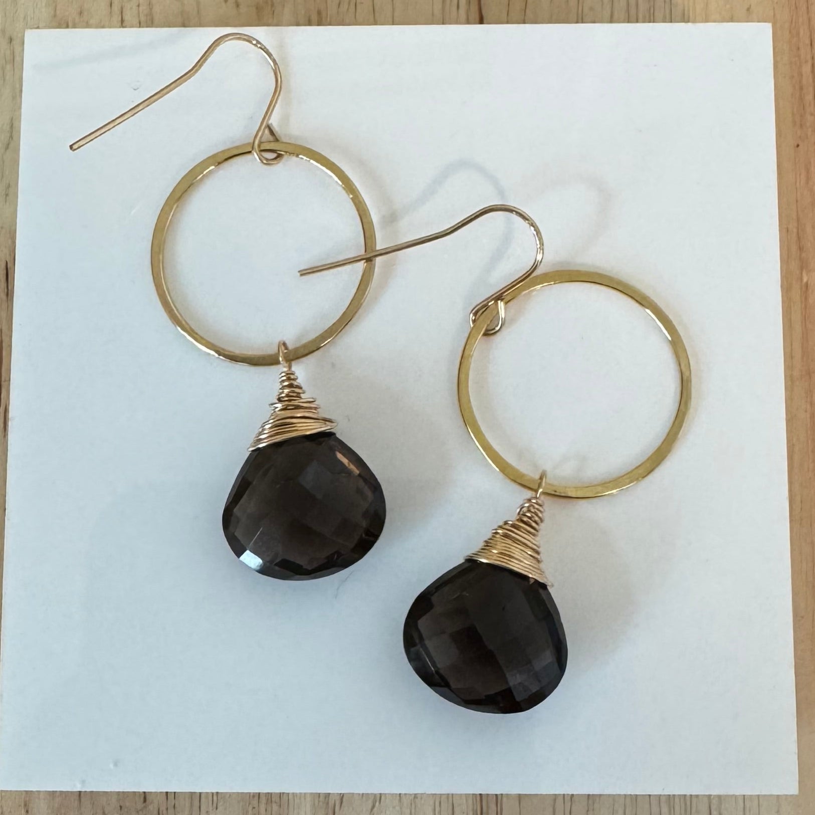 Faceted Smokey Quartz on Tiny Hoop Earrings