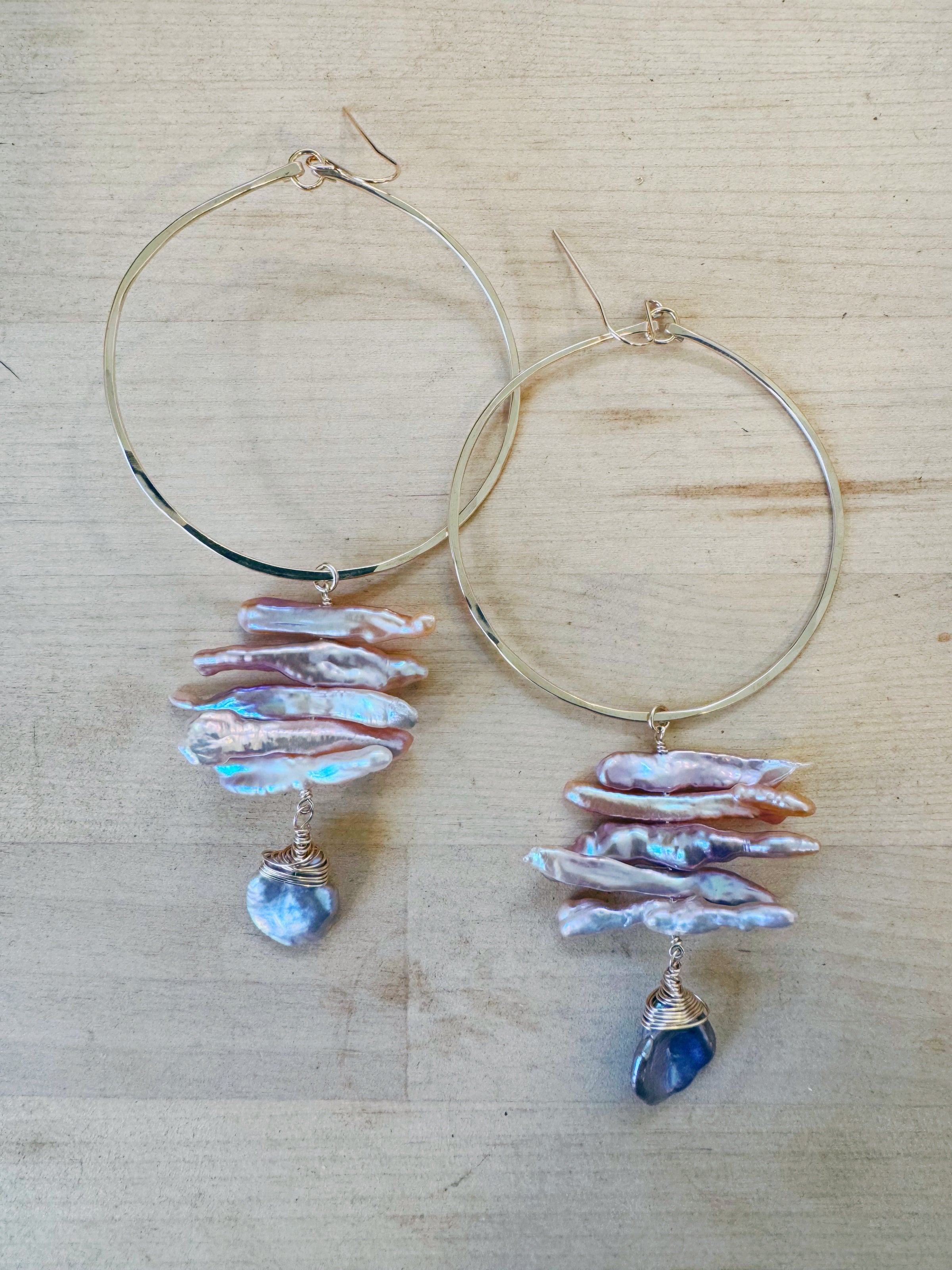 Pink Biwa Stick Pearls and Keshi Pearl Earrings