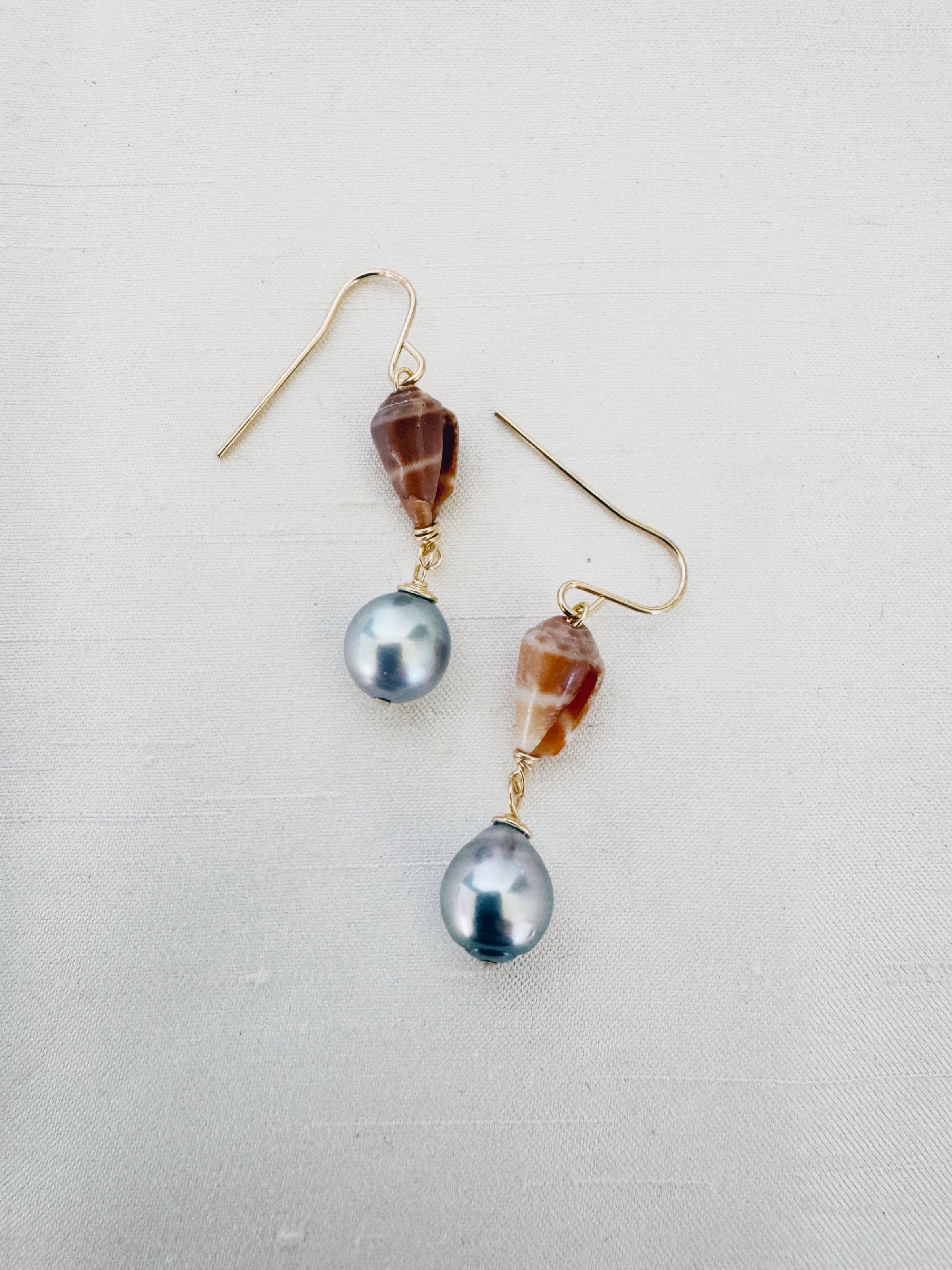 Shell and Black Tahitian Pearl Earrings
